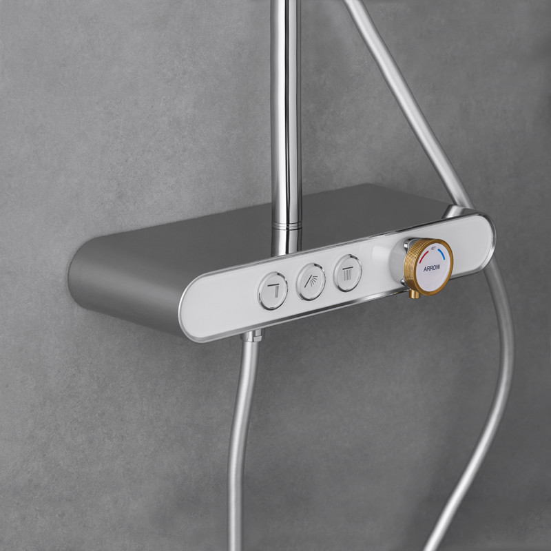Deze de Mixerreeks van de Handdouche is een ideale keus voor om het even welk huis. Het heeft van hoogte gemaakt - het het kwaliteitsmessing en chroom plateerden oppervlaktebehandeling. Deze aan de muur bevestigde reeks van de douchetapkraan omvat een douchehoofd en een handspuitbus. Zijn hoofd en handbediende showerhead van de regendouche maakt het voor om het even welke het overgieten ervaring perfect.