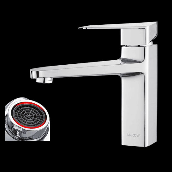 ARROW badkamerontwerp mixer wastafel kraan kranen hebben een modern waterval ontwerp met één hendel, messing constructie en keramische klepkern. Ondersteund door een garantie van 5 jaar voor betrouwbare prestaties.